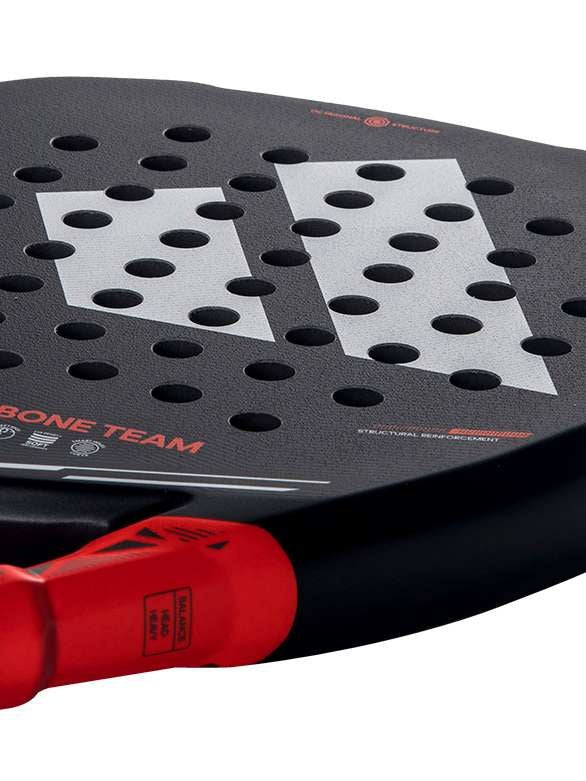 Metalbone Team 2026 offers a comprehensive package of features, with a focus on attack play. Its offensive edge is enhanced by two new technologies from the 2026 Metalbone collection: the Power Extra Grip handle, which increases inertia on strikes, and the Low Poly polyhedral design in the core and frame, providing added stiffness. Both innovations, along with the diamond-shaped head and Octagonal Structure tubular frame, help generate more powerful shots and reduce torsion on impact. Made from fiberglass and EVA Soft Performance rubber, this racket provides balance, easy handling, and optimal ball output. For spin, the sandy-textured Spin Blade Gritt surface guarantees enhanced control over spin shots.